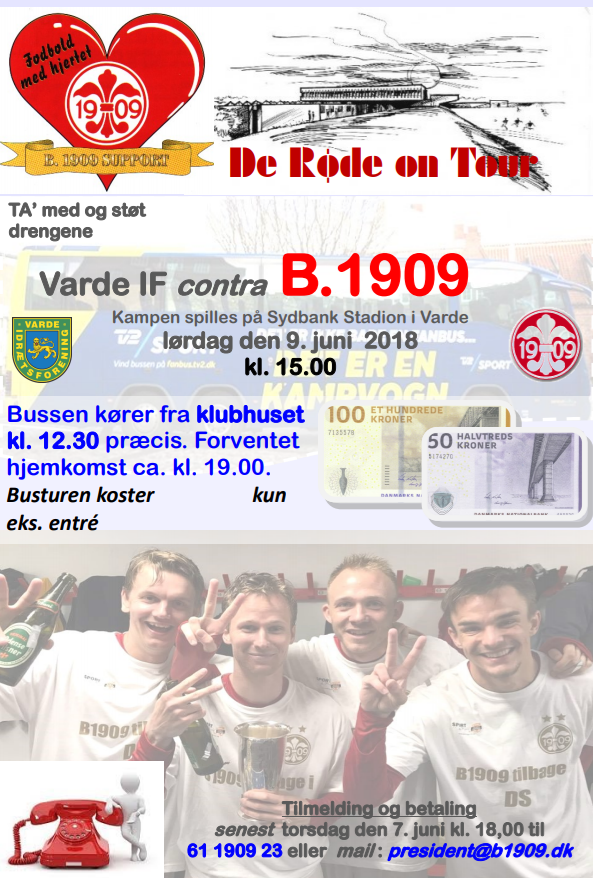 B.1909 SUPPORT arrangerer bustur til udekampen i Varde, der spilles lørdag d. 13. oktober kl. 15.00.